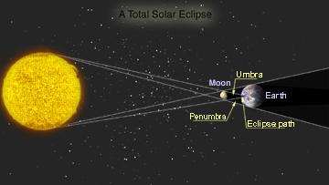 the Moon blocks the light of the Sun as a shadow of the Moon is cast on the